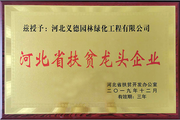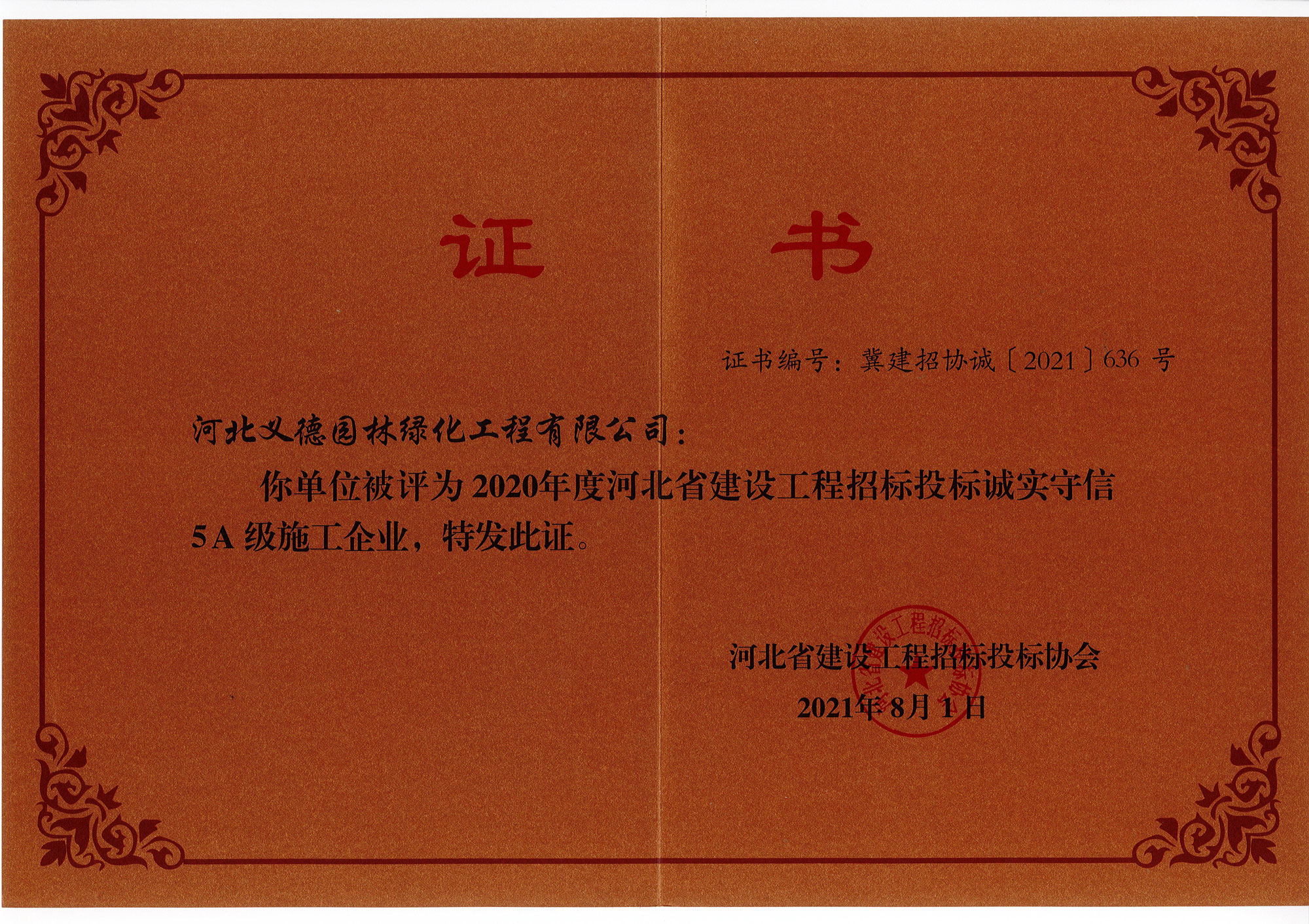 近幾年來我公司被授予2019年-2022年河北省扶貧龍頭企業(yè)、2018年國家林業(yè)標(biāo)準(zhǔn)化示范企業(yè)、2019年度全國苗圃50強(qiáng)、2018-2019年度河北省林業(yè)重點(diǎn)龍頭企業(yè)、2018年保定市精品特色現(xiàn)代農(nóng)業(yè)園區(qū)、2018年度保定林木種苗協(xié)會(huì)授予特色苗圃、2018年度北方十佳特色苗圃、2016-2019年河北省建設(shè)工程招標(biāo)投標(biāo)誠實(shí)守信5A級施工企業(yè)等榮譽(yù)稱號,2017年保定市林木種苗龍頭企業(yè)、石家莊市2017年度優(yōu)秀園林企業(yè)。